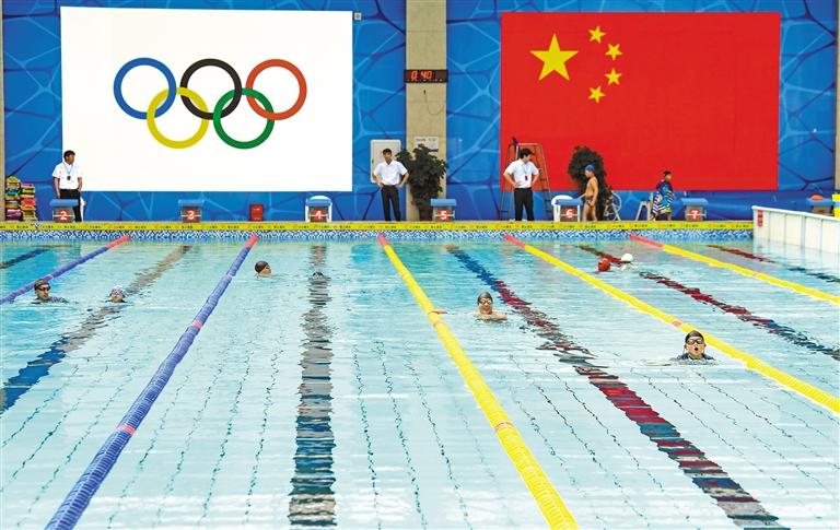 圖為游泳比賽現(xiàn)場。記者 潘多 攝
