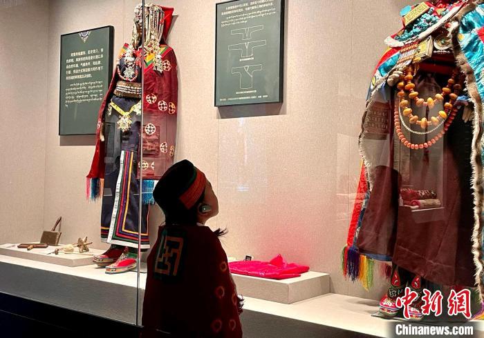 圖為穿著扎達傳統服飾的次仁央宗在參觀阿里博物館。拉巴卓瑪 攝