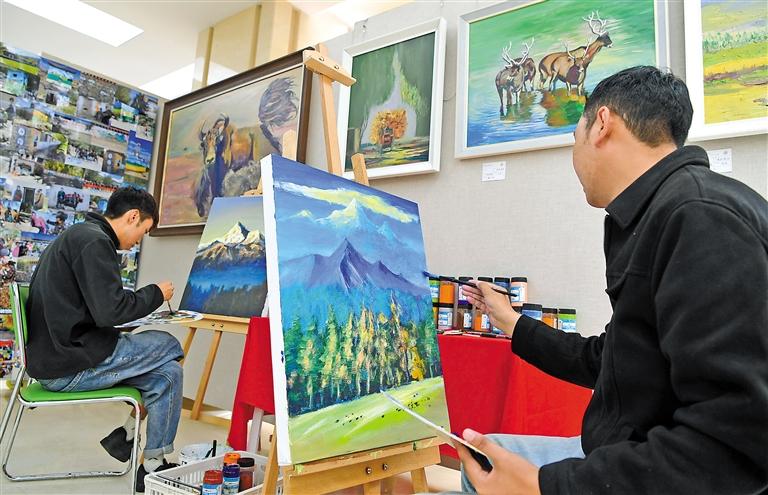 圖為西藏職業技術學院的學生在畫油畫。記者 王敏 攝