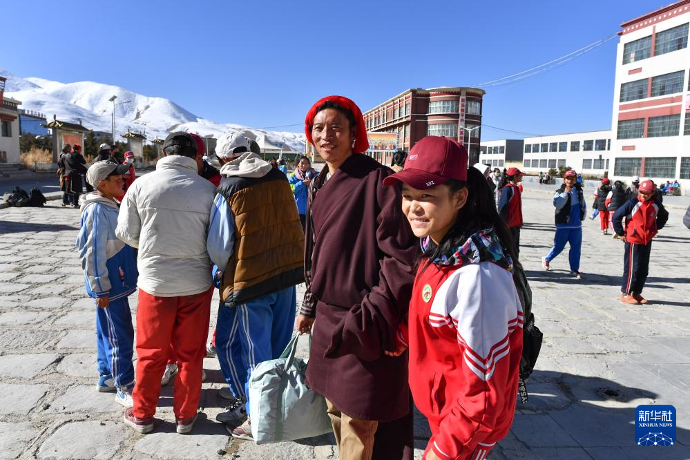 斯曲卓瑪的父親來學校接女兒回家(11月15日攝)。新華社記者 晉美多吉 攝