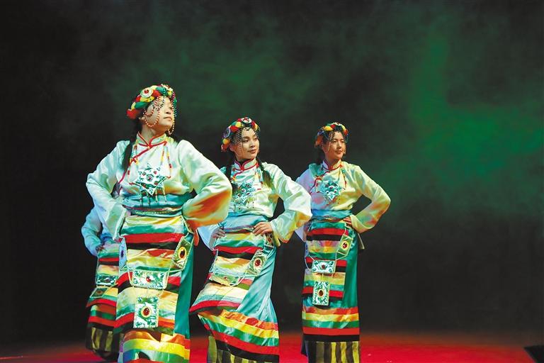 圖為學生表演藏族傳統舞蹈。