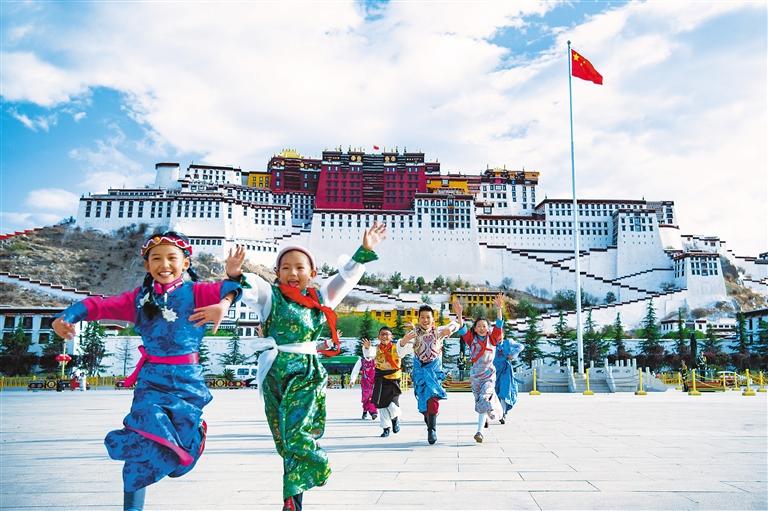 圖為6月1日,小朋友們在拉薩布達拉宮廣場玩耍。新華社發(fā)(旦增努布 攝)