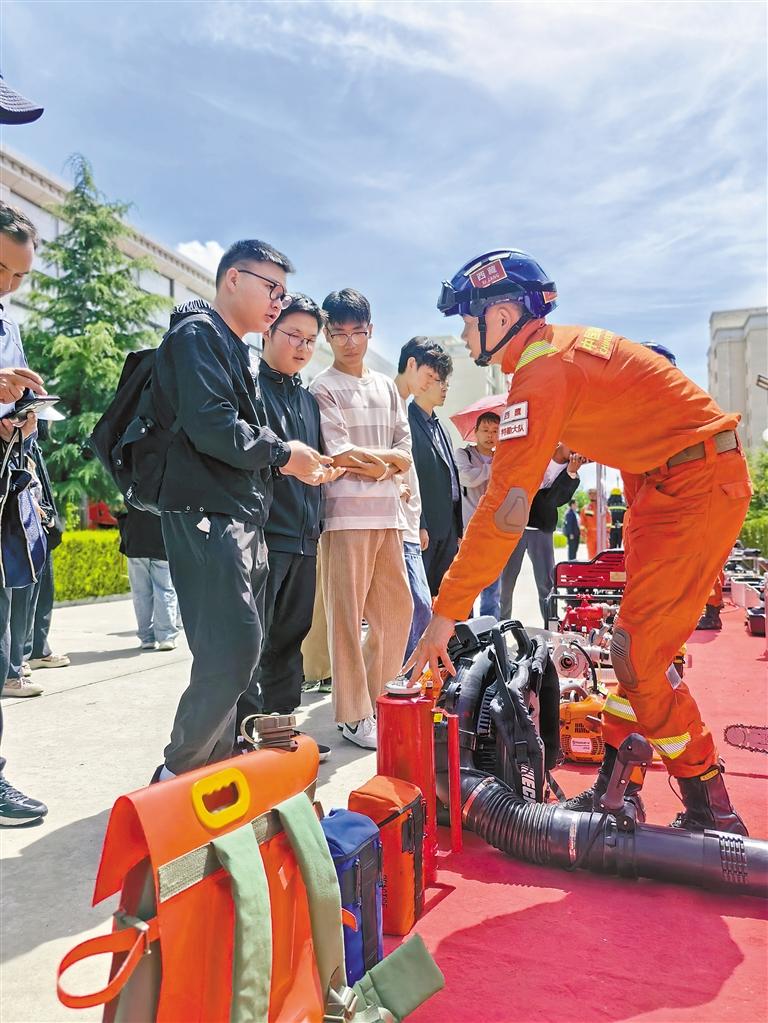 西藏大學學生聽取消防員講解消防救援設備的使用。通訊員 毛娜 攝