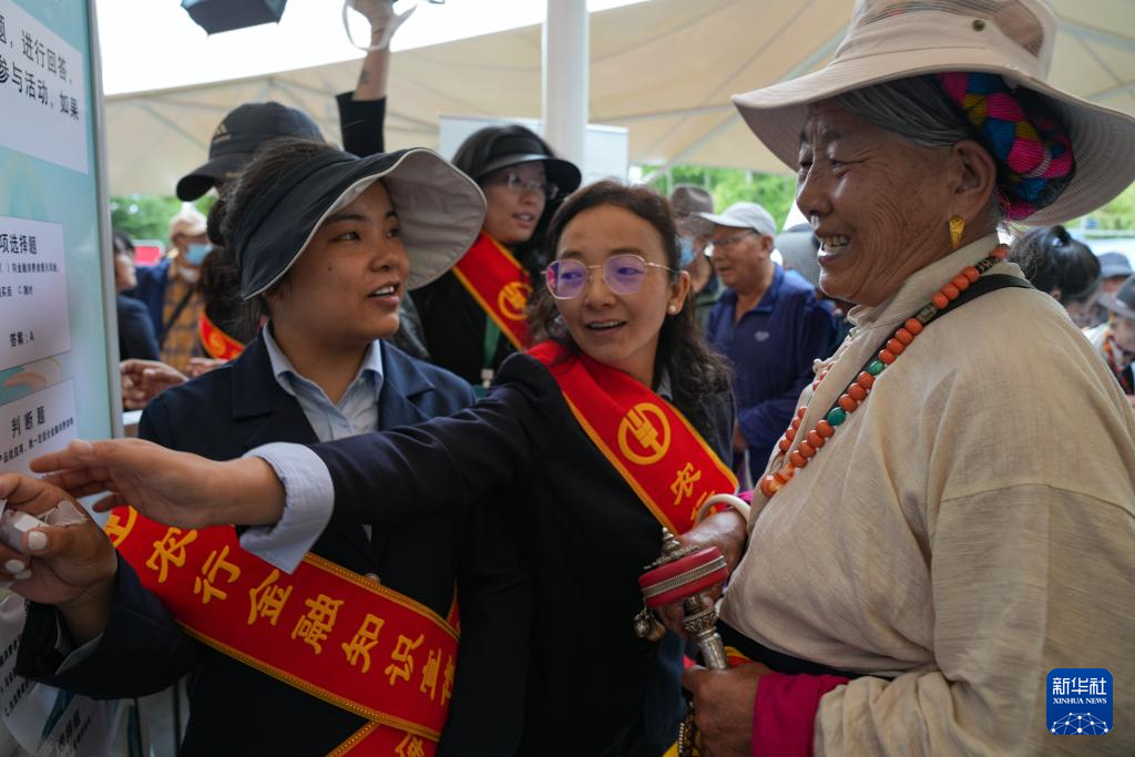 9月1日,群眾參與金融問題有獎回答。新華社記者 晉美多吉 攝
