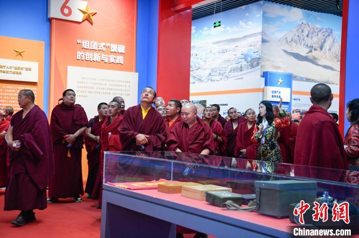 西藏佛學院組織僧尼學員約350人分兩批次,分別于9月5日、6日赴西藏自治區會展中心參觀全國對口援藏30周年成就展。