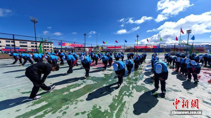 圖為活動開始前孩子們進(jìn)行拉伸運(yùn)動。西藏自治區(qū)體育局 供圖