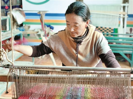 圖為村民在南木鄉多彩阿佳編織農牧民專業合作社織布。拉薩融媒記者 孫靖宇攝