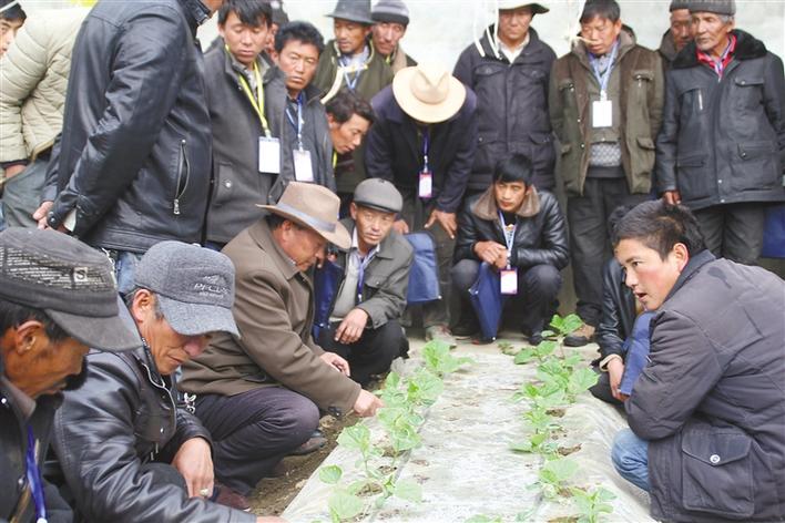 圖為白朗縣龍頭企業技術人員對貧困戶進行蔬菜種植技術培訓。記者 次仁片多 索朗瓊珠 攝