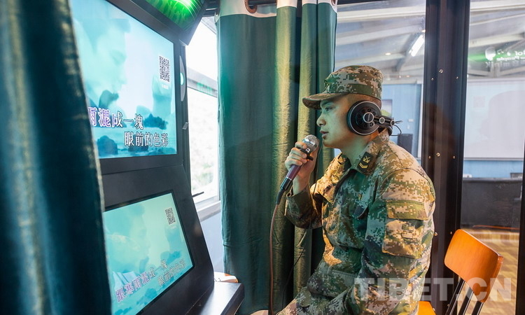 圖為邊防官兵正在移動唱吧內唱歌 攝影:趙耀