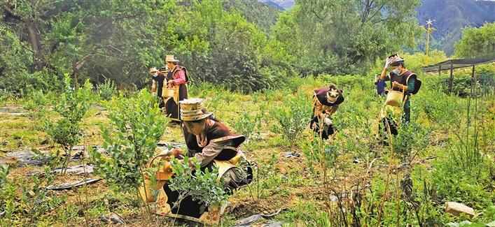 圖為卡達村群眾在藍莓種植基地采摘藍莓。通訊員 張淑萍 攝