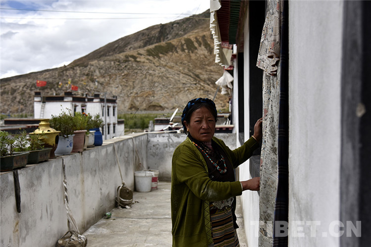 圖為達那答鄉政府新區易地扶貧搬遷點居民尼瑪普赤在自家門前 攝影:王媛媛