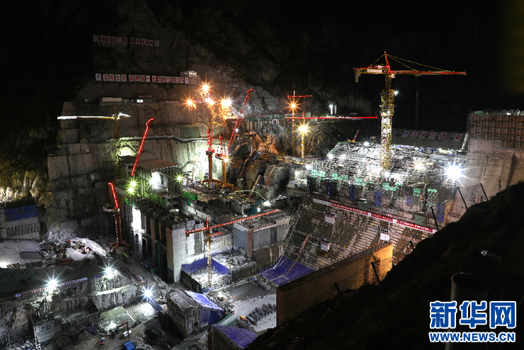 大壩施工現場夜景(新華社發 廖江平 攝)