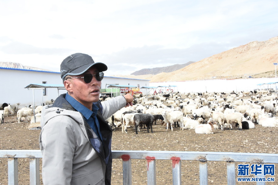 9月14日,古汝村崗巴羊生態養殖合作社理事長拉巴平措在介紹崗巴羊生態養殖合作社。新華網 張宸 攝