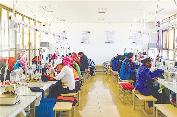 西藏阿里地區(qū)噶爾縣獅泉河鎮(zhèn)康樂新居是由5個縣區(qū)的易地扶貧搬遷戶組成的社區(qū),共714戶3152人。為鞏固脫貧攻堅成果,方便農(nóng)牧民群眾就近就便就業(yè),增加居民收入,2017年開始,這里成立了服裝、地毯加工廠,搬遷后的農(nóng)牧民群眾既掌握了技能,也改善了生活條件。