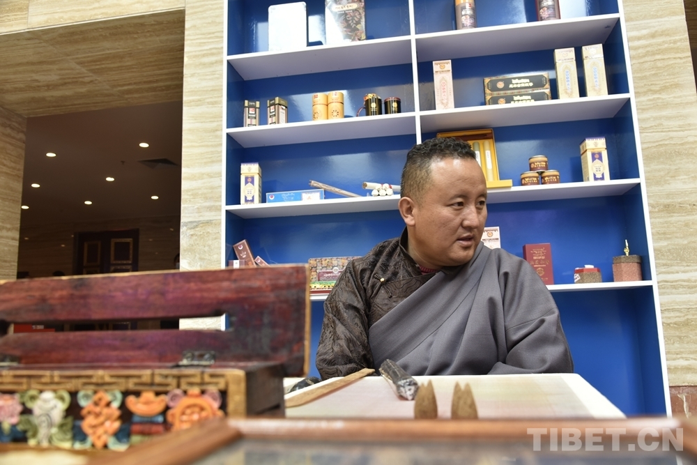 圖為非遺扶貧帶頭人、藏香制作技藝國家級非遺代表性傳承人旦增曲扎接受采訪 攝影:王媛媛