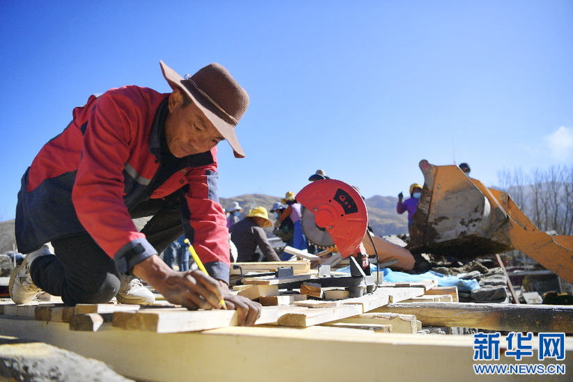 村民普布卓瑪家正在翻修舊房子。十幾個工人分工協(xié)作,分別承擔了切割木板、澆水泥、砌磚墻等工作,施工現(xiàn)場熱火朝天,井然有序。普布卓瑪說:“這幾年收入多了,生活好了,就想著把房子再翻修一下。”
