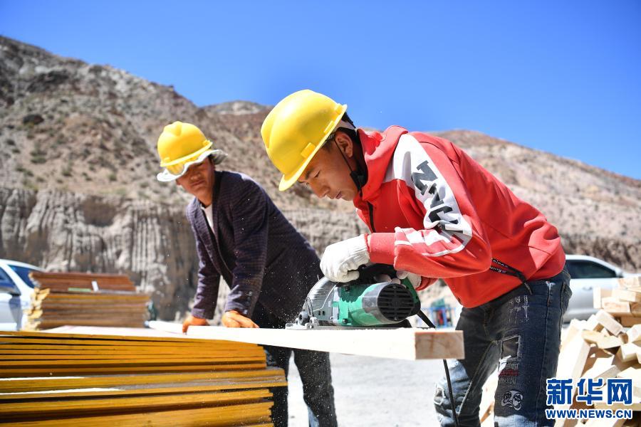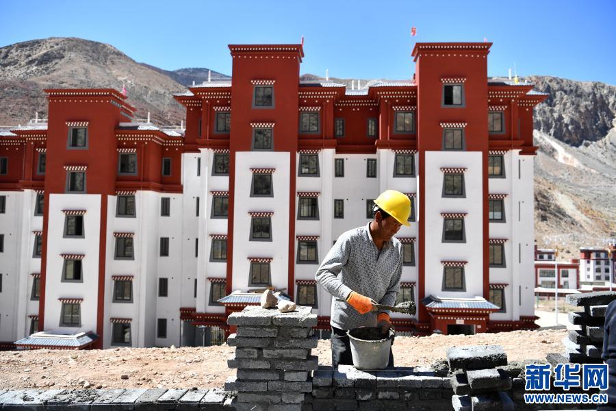 西藏昌都市八宿縣吉達鄉仲沙村村民平措,在八宿縣西巴易地扶貧搬遷安置點的工地上勞作(5月10日攝)。2019年,平措和家人搬遷到西巴易地扶貧搬遷安置點,住進了75平方米的新居。平措還在安置點找到了一份建筑工的工作,每個月有4000多元的收入。新華社記者 詹彥 攝