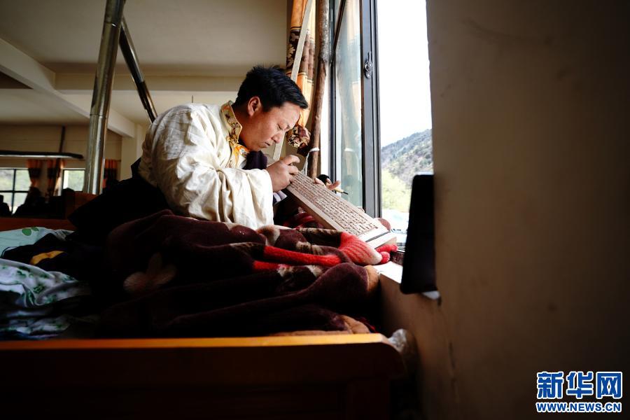 在西藏昌都市江達縣波羅鄉木松民族手工藝有限責任公司,波羅鄉村民白瑪加村在制作木刻(5月1日攝)。白瑪加村2017年開始學習波羅木刻,如今已經出師,成為一個熟練的木刻藝人,一個月能制作6塊木刻作品,每個月有4000多元的收入。新華社記者 詹彥 攝