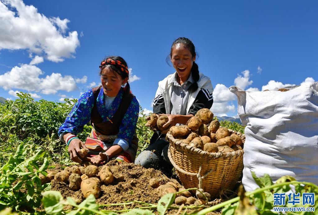 日喀則市桑珠孜區東嘎鄉祺瑪黨慶現代農業發展專業合作社社員在分揀土豆(2018年9月4日攝)。 新華社記者張汝鋒 攝
