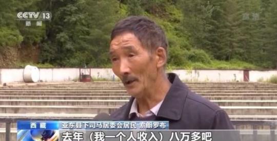 亞東縣下司馬居委會居民 索朗羅布:去年(我一個人收入)八萬多,魚塘里面工資也有,國家邊境補貼也有,生活可以的,沒事(問題)的。