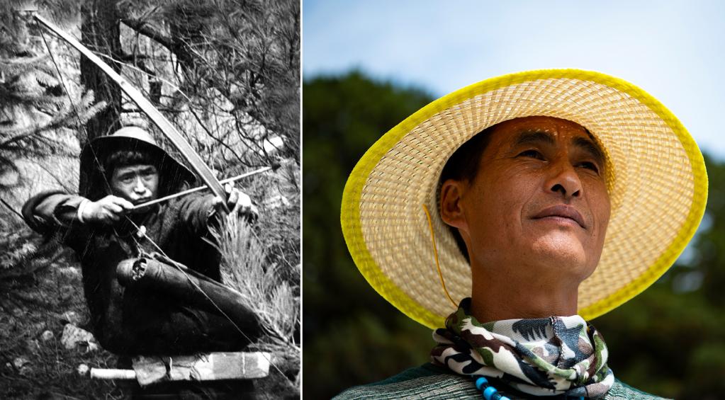 左圖是20世紀50年代瓊林村非常有名的獵手達前(資料照,新華社發);右圖是瓊林村珞巴族達吉,結束打獵生涯,成為護林員(2021年6月19日攝)。新華社記者 晉美多吉 攝