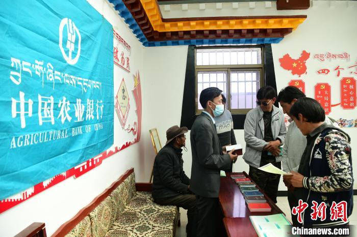 圖為農(nóng)行日土縣支行工作人員為村民宣講貸款政策。 貢嘎來松 攝