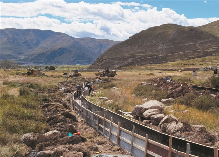 圖為當地農牧民正在參與修建灌溉水渠。拉薩融媒記者 凃 瓊攝