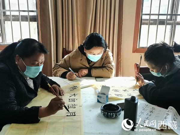 “村里有好多人喜歡書法,恰好城關區開展新時代文明實踐站·一村一特色文化品牌村(社區)創建活動,我們就想著往這個方面打造一下。”蔡村第一書記土登洛桑介紹。如今,每逢周六,村里會邀請拉薩市文聯、拉薩市書法家協會的書法名家,為熱愛書法的村民們傳授技藝。
