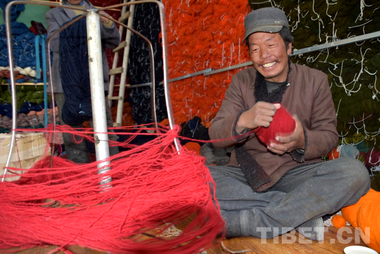 “剛到合作社每天工資160元,一個月下來就有小四千,一年收入妥妥的超3萬元?!闭f話間,巴頓也沒有歇下手中的活計。穿桿結扣,勤勞的雙手一直忙碌著,在合作社6年多,他已經比較熟練地掌握了卡墊織法、色彩以及紋樣。如今,卡墊接活都是以承包方式,往往供不應求,一家人住在裝修一新的藏式小院里,妻子現在也在參加合作社新員工培訓,四個孩子都進了公立學校讀書,享受了義務教育免費“三包”政策。