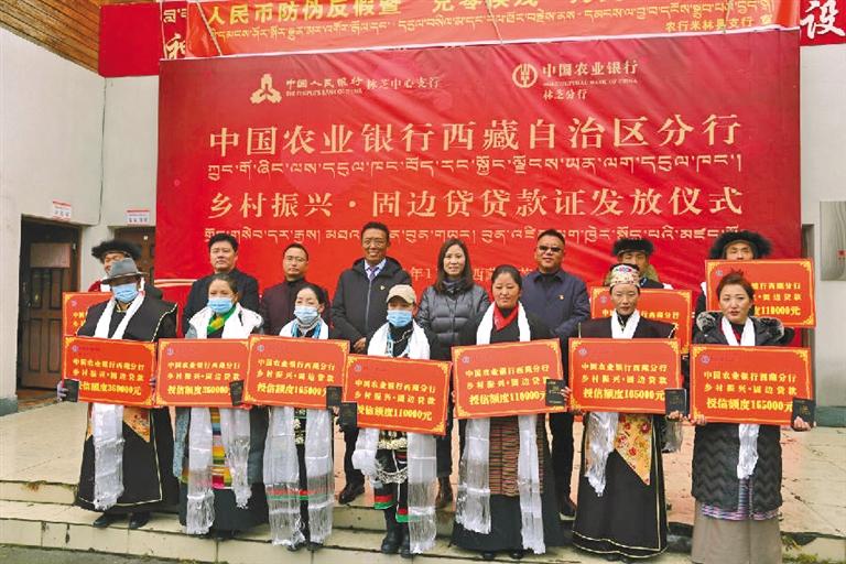 近日,人行林芝市中心支行與農行林芝市分行在米林縣南伊村舉行“鄉村振興·固邊貸貸款證發放儀式”,為該村45戶農牧民群眾發放“鄉村振興·固邊貸”貸款證,共授信709萬元。