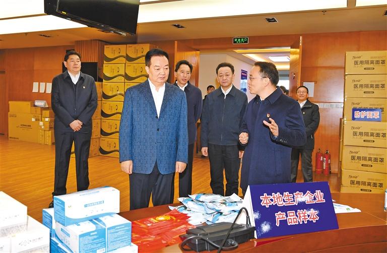 2月14日上午,西藏自治區黨委書記王君正在自治區經濟和信息化廳調研。這是王君正來到防疫物資儲備庫,認真了解西藏應對新冠疫情物資保障情況。記者 旦增西旦 攝