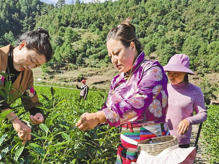 圖為察隅縣下察隅鎮(zhèn)沙瑪村村民正在采茶。記者 謝筱純 王珊 張猛 通訊員 滕云 攝