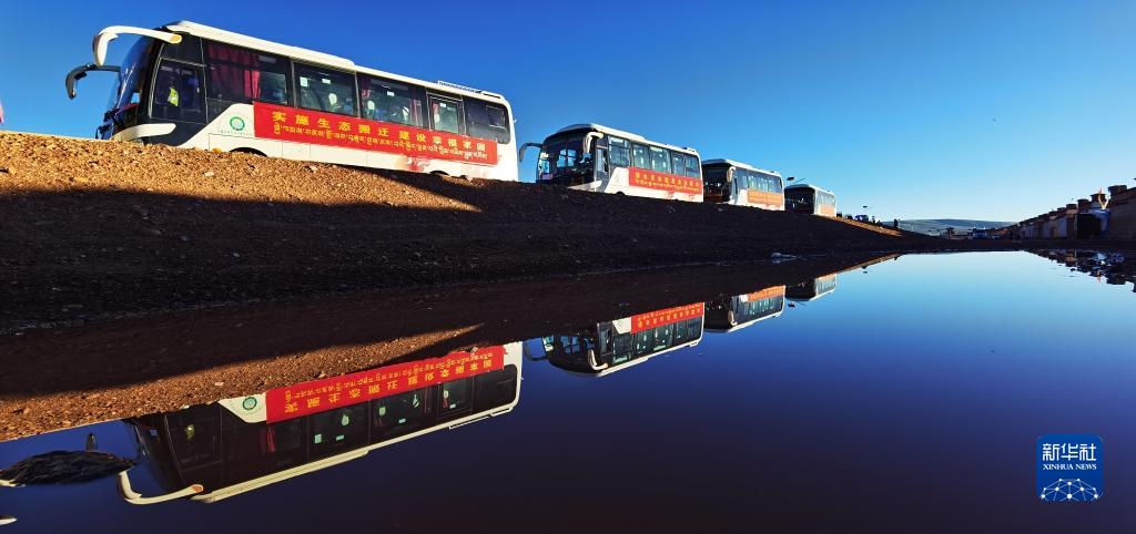 7月19日,西藏自治區開始實施全國海拔最高縣雙湖縣第二批高海拔牧民生態搬遷。客車載著牧民駛離西藏那曲市雙湖縣多瑪鄉,前往位于山南市貢嘎縣的森布日安置點。