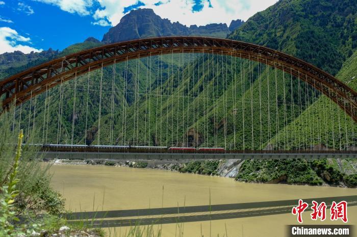 圖為一列火車經過西藏雅魯藏布江藏木大橋。 江飛波 攝