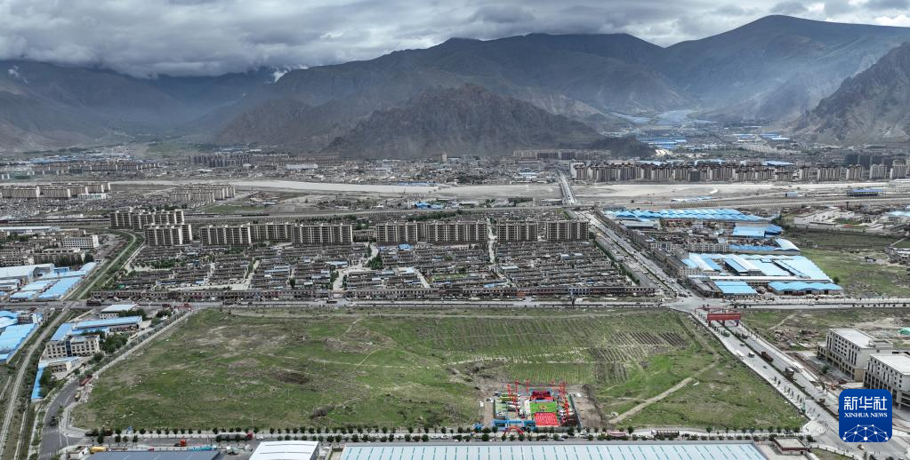 7月5日拍攝的拉薩市年產30萬噸啤酒建設項目奠基儀式現場(無人機照片)。新華社記者 晉美多吉 攝