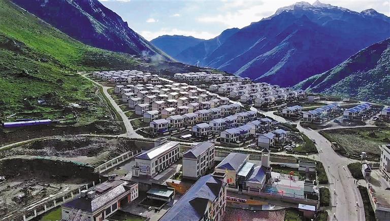 日喀則市定日縣絨轄鄉設施完善的邊境小康村一角。
