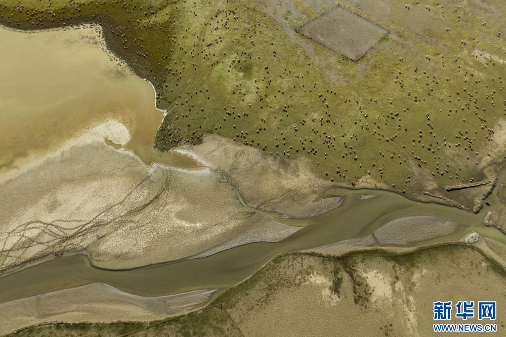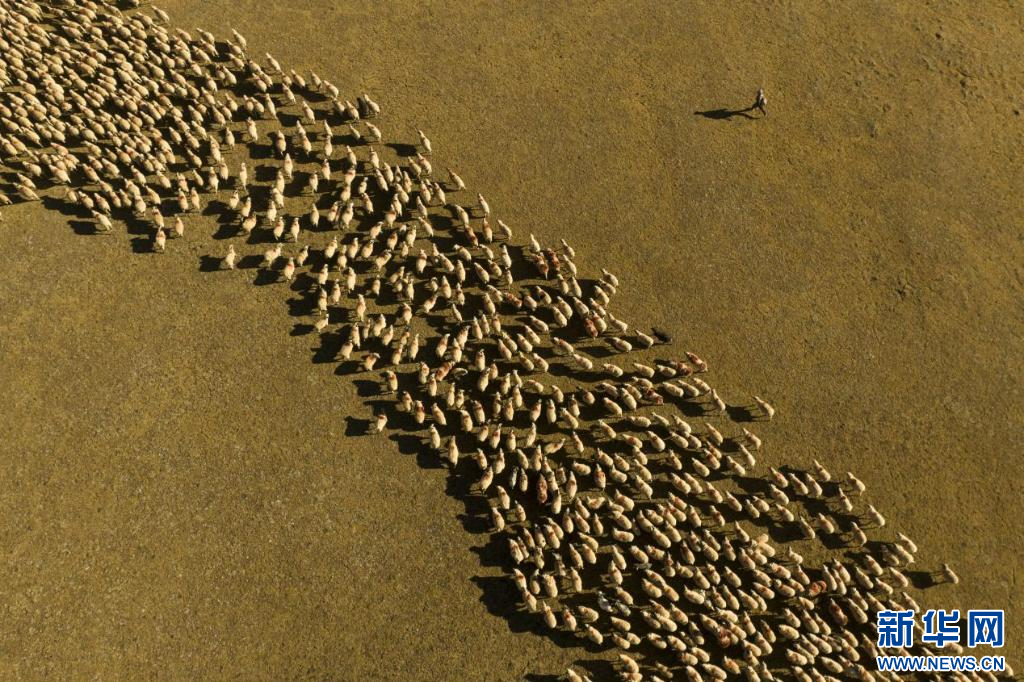 在西藏措美縣境內拍攝的羊群(無人機照片)。新華網 旦增努布 攝