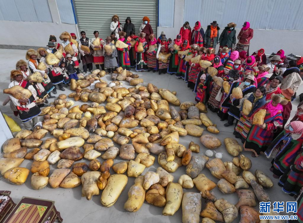 合作社為社員發放畜產品(11月28日攝)。新華社發(索朗仁青 攝)