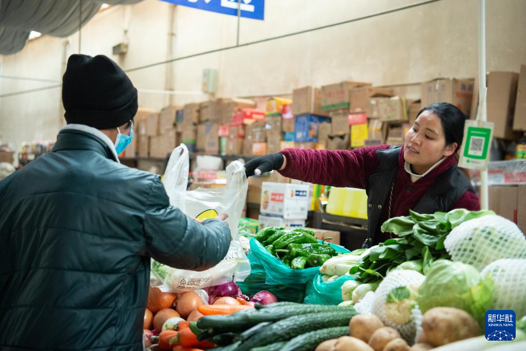 12月15日,羌域市場里,一名顧客在購買蔬菜。新華社發(旦增努布攝)