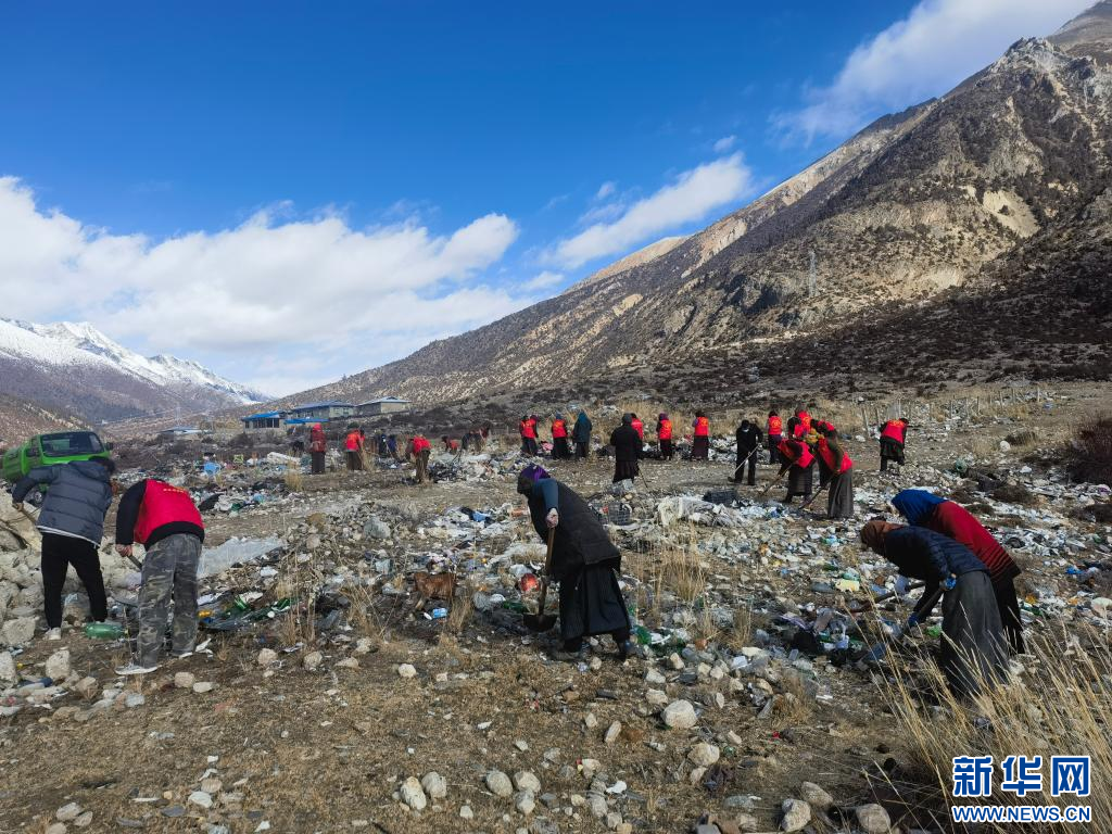 在西藏昌都市八宿縣然烏鎮然那村,群眾們正在參與環境衛生整治活動(12月6日攝)。新華社發(土登念扎 攝)