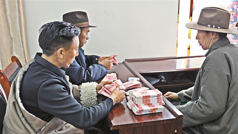 圖為分紅現場。通訊員 普珍 阿珍 益西平措 攝