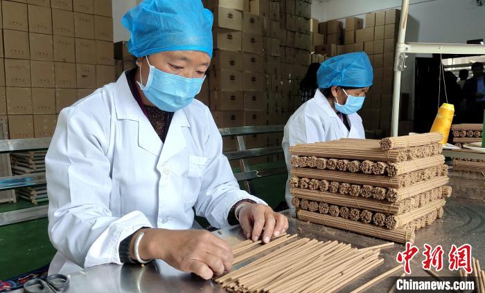 “我們農(nóng)閑時就會來這里制作藏香。”幾位埋頭工作的婦女不善言談,但她們數(shù)線香、捆藏香流程十分嫻熟,她們足不出村實現(xiàn)就業(yè)增收。