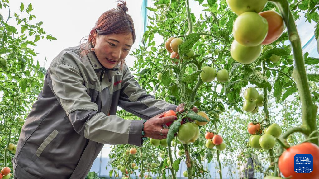 11月22日,在丁青縣農業生態產業園,工作人員在采摘西紅柿。新華社記者 格桑朗杰 攝