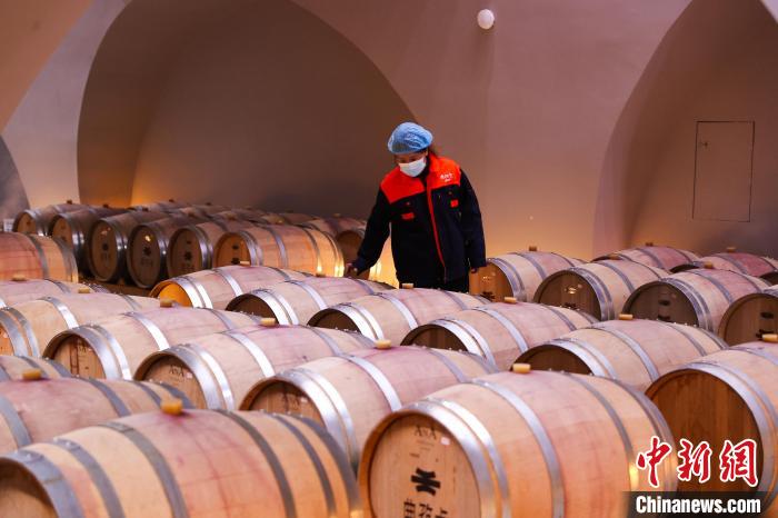 圖為工作人員在儲酒車間調試設備。中新社記者 薛蒂 攝