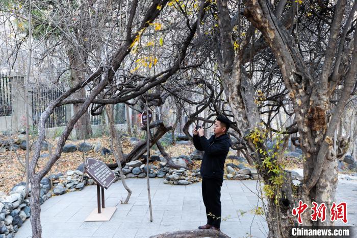圖為游客在曲孜卡1865酒莊拍照留念。中新社記者 薛蒂 攝