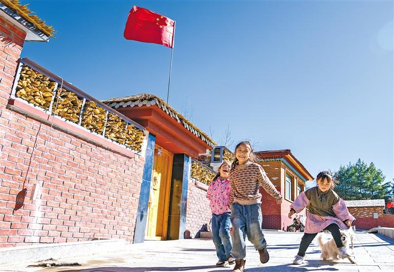 達曼新村的孩子們在玩耍。新華社記者 丁增尼達 攝
