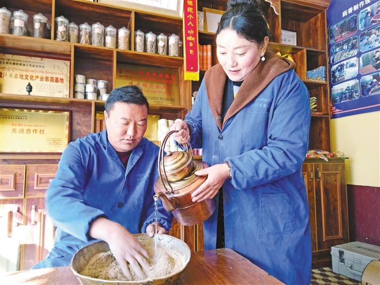 在村子里,受他們的影響,村民們也躍躍欲試,紛紛成立了合作社。曲旺作為婦女代表,站在工坊中間,目光堅定而充滿希望:“今后啊,我更有信心帶動更多的姐妹走上商業發展道路,讓咱這藏香事業越做越大,在傳承非遺的同時,繼續給鄉親們鋪就增收致富路。”