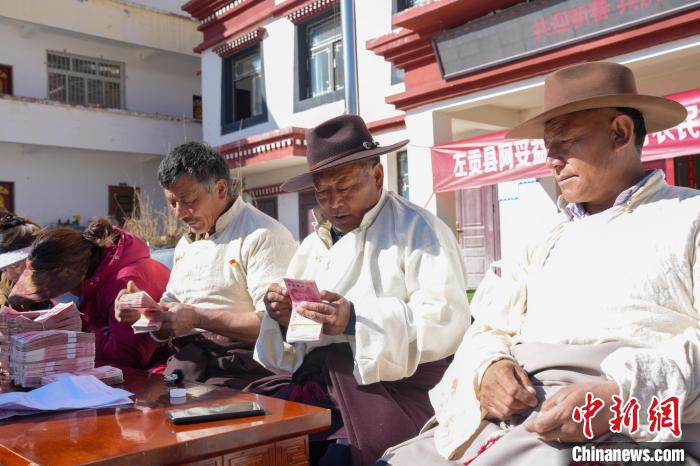 西藏自治區昌都市左貢縣26日介紹,在藏歷新年來臨前,該縣田妥鎮亞中村農民專業合作社舉行一年一度的分紅大會。現場,全村農牧民共領取、兌現分紅資金及物資197.22萬元(人民幣,下同)。