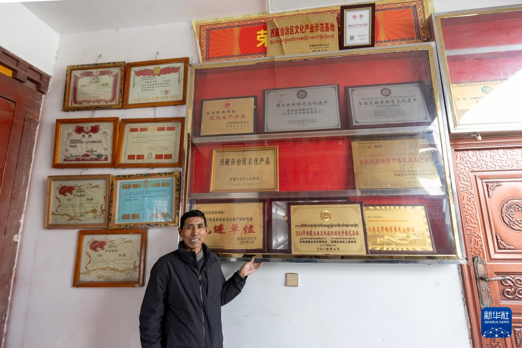 廠長拉巴瓊達是這項非物質文化遺產(chǎn)的代表性傳承人。如今,他帶領18個匠人和學徒把廠子做得紅紅火火,2024年平均每個工人每月收入達到7000多元,靠非遺手藝實現(xiàn)了共同富裕。