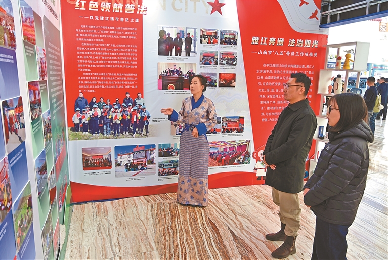 在全區“憲法宣傳周”活動暨“八五”普法成果展示活動上,市民游客觀看普法展覽。記者 唐斌 王敏 攝影報道